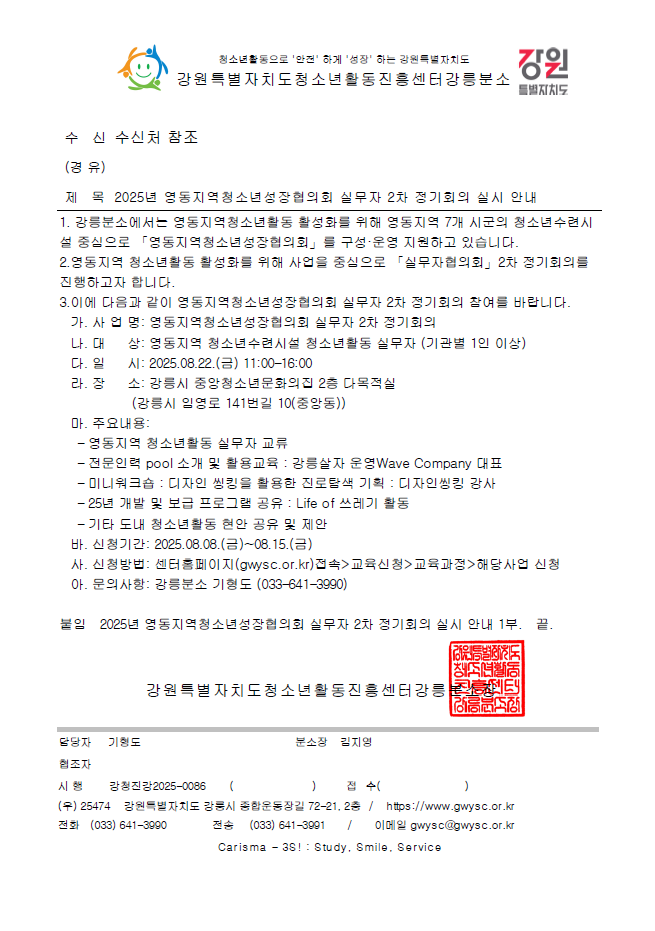 확인서2025년 영동지역청소년성장협의회 실무자 2차 정기회의 실시 |