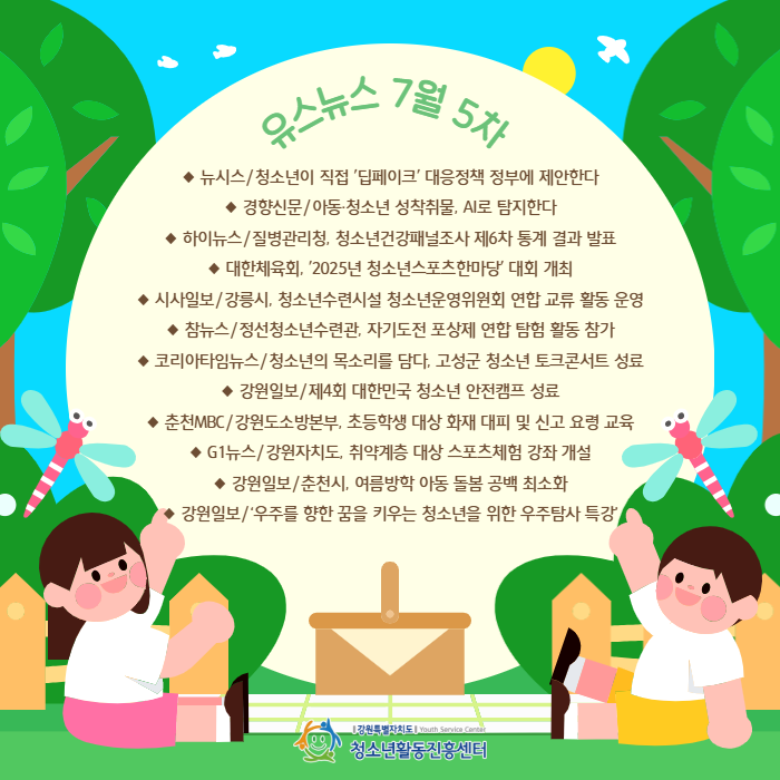 | 제목 | [YOUTHNEWS]유스뉴스 7월 5차 소식 | ||||