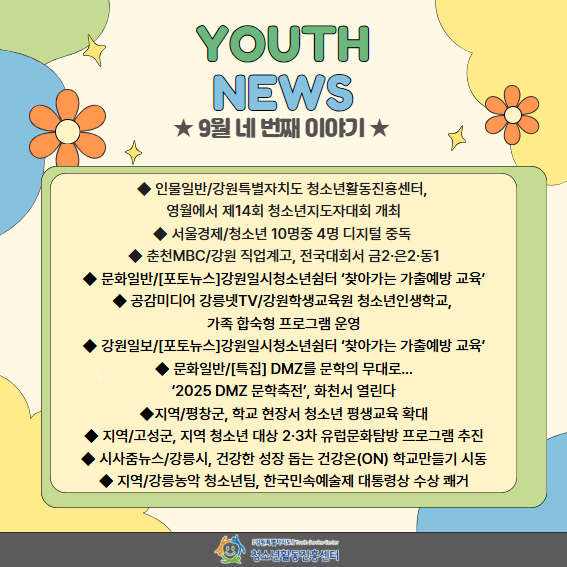 | 제목 | [YOUTHNEWS]유스뉴스 9월 네번째 소식 | ||||