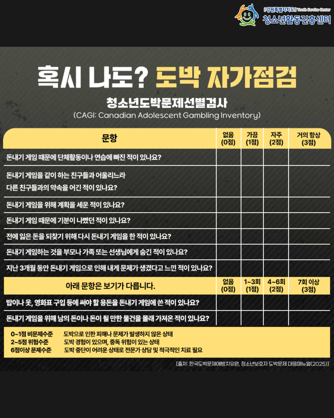 🧩 도박 자가점검 (CAGI 일부 문항)