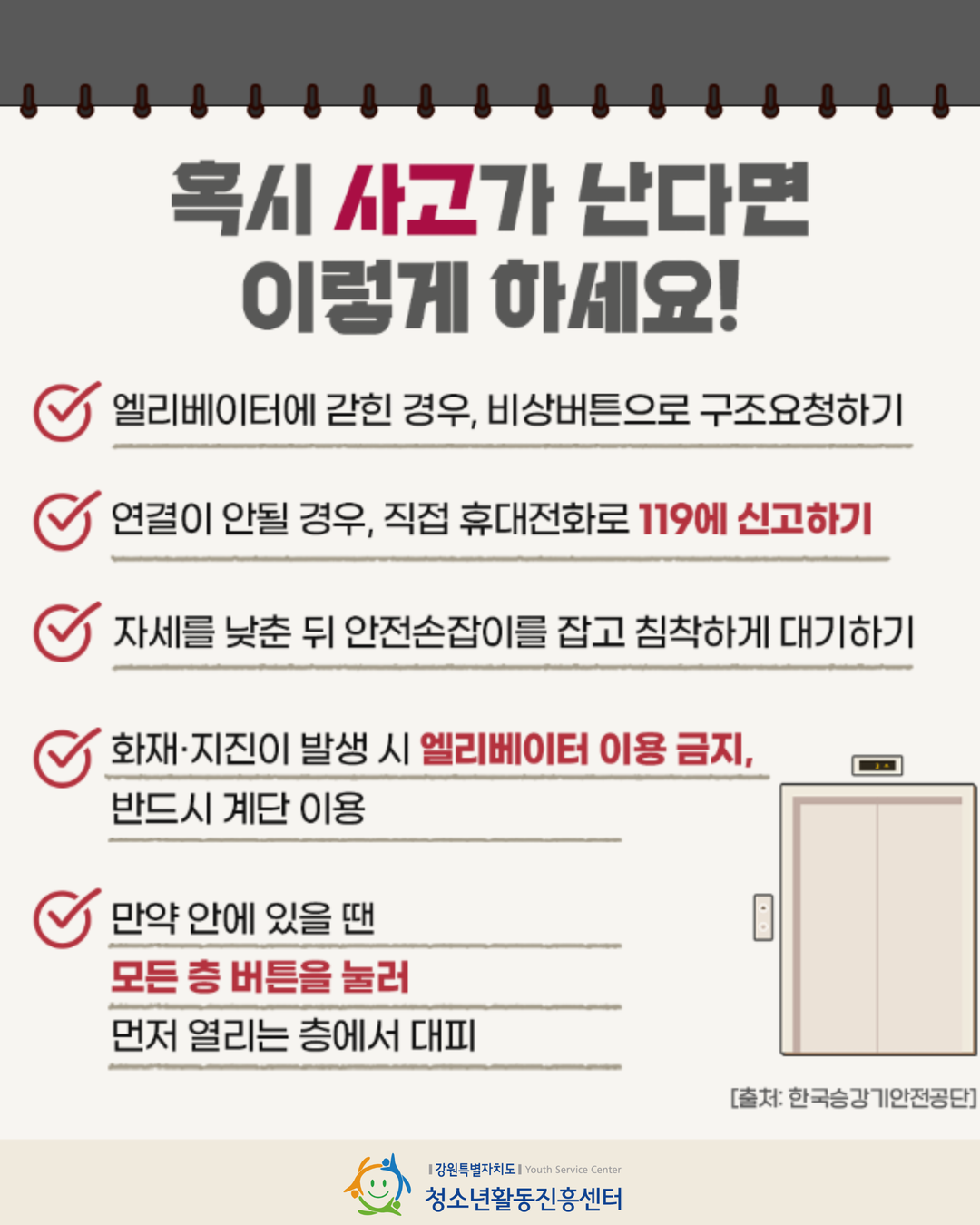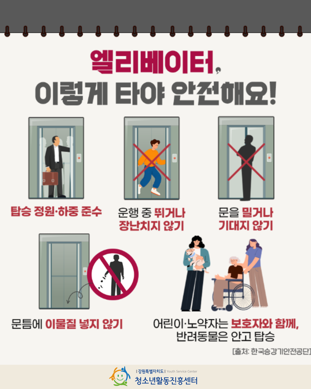 우리 모두의 안전을 위해 가장 중요한 승강기 안전 수칙만 모았어요! 👇