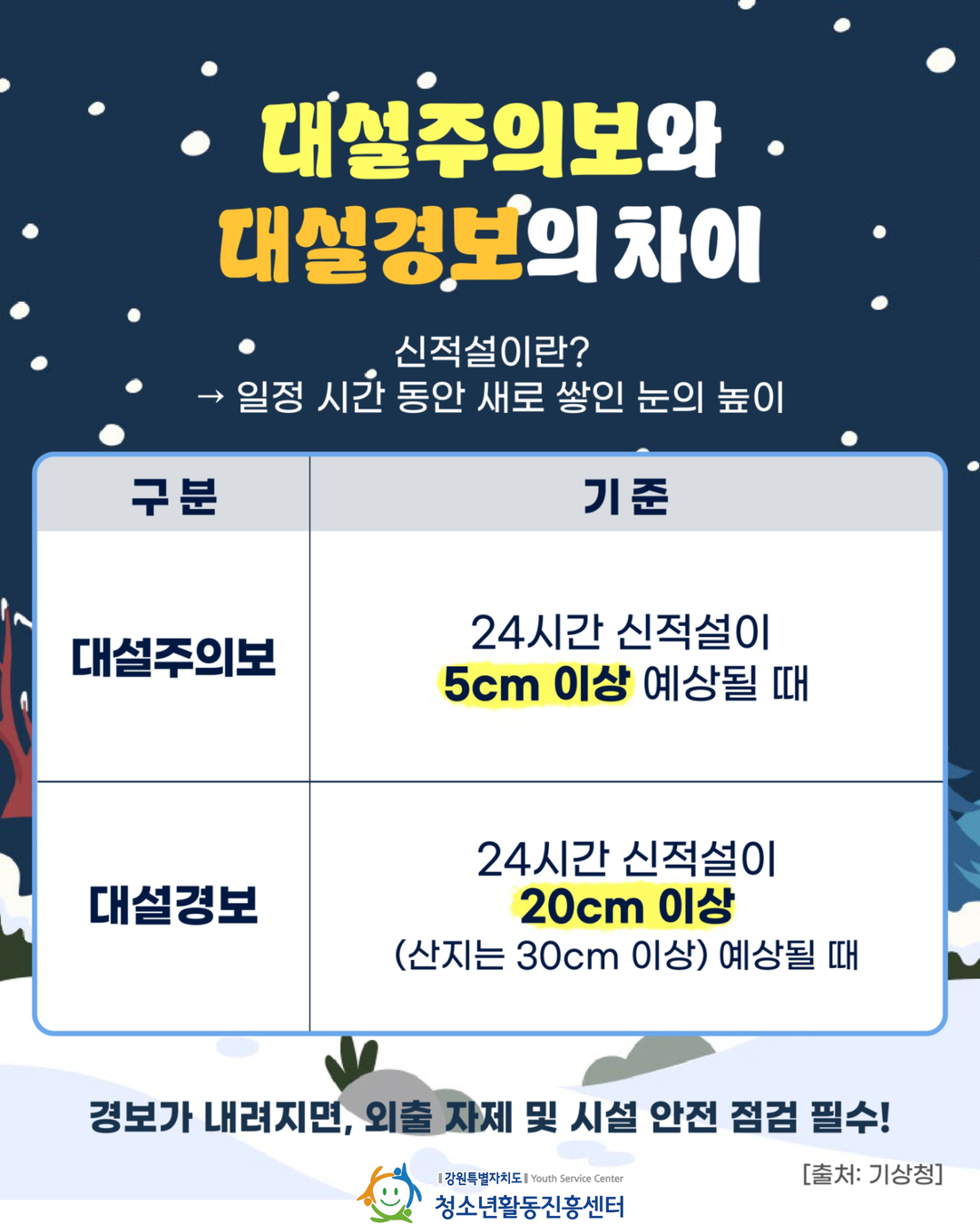 📢 대설주의보·경보 기준