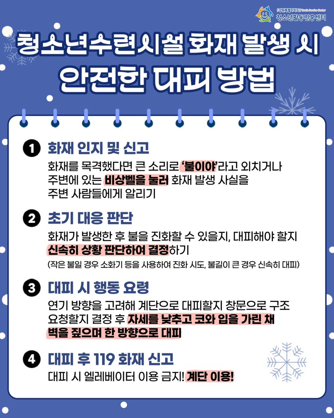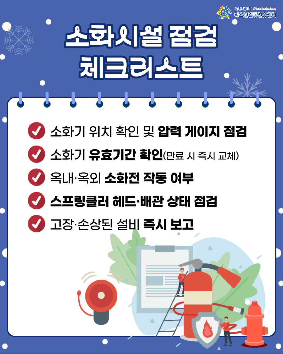 추운 겨울, 청소년들이 이용하는 수련시설의 안전을 위해 꼭 확인해야 할