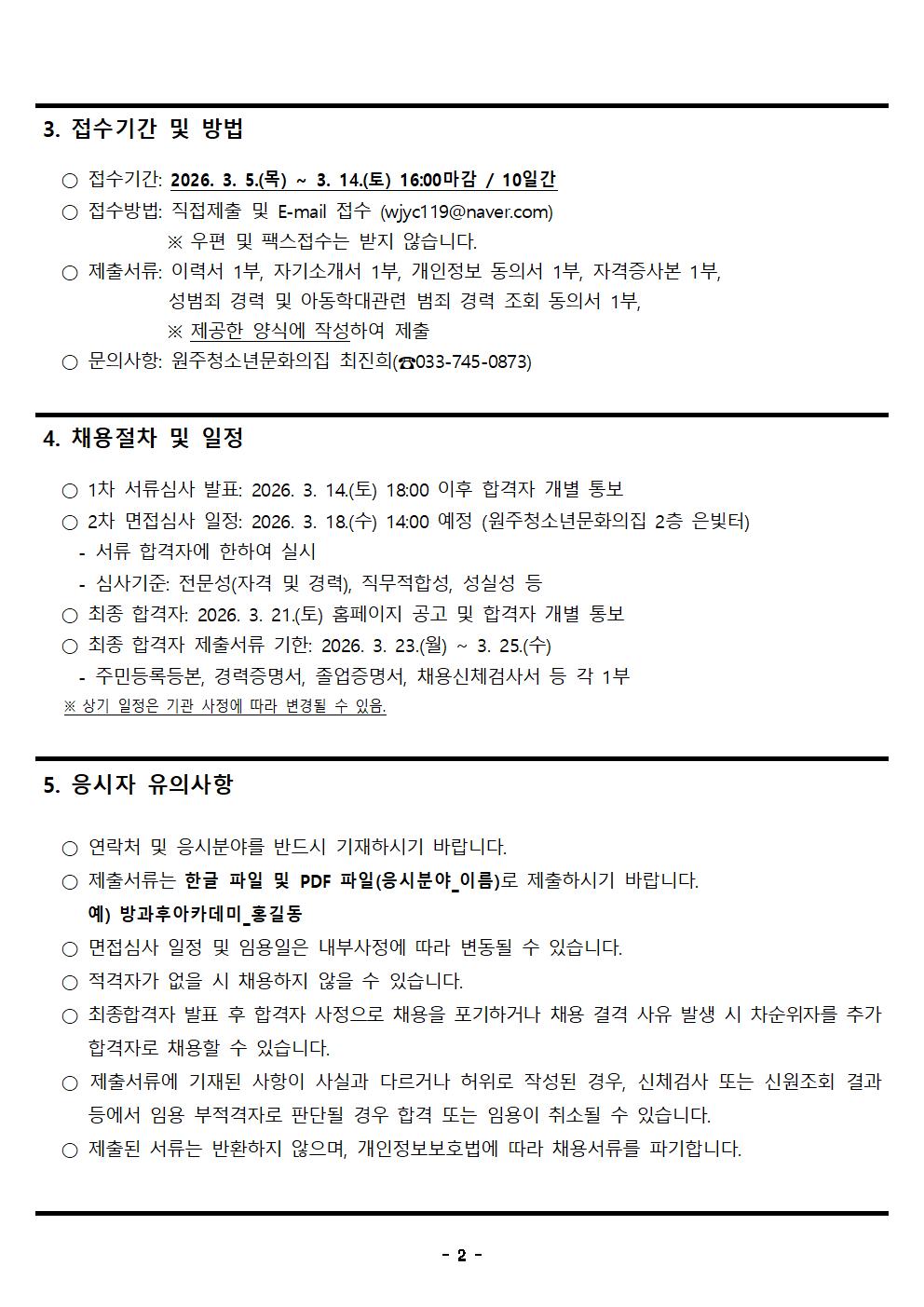 원주시방과후아카데미 팀장 채용 공고(~3.14.)