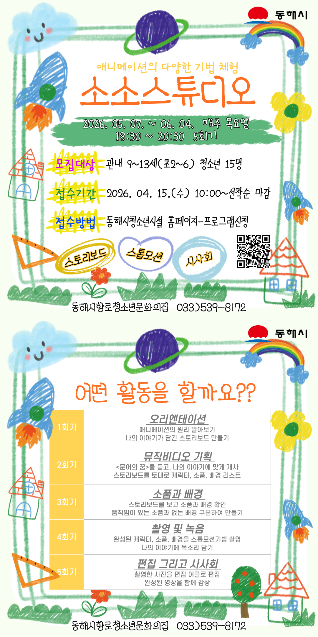 동해시향로청소년문화의집 <소소스튜디오> 참가자 모집