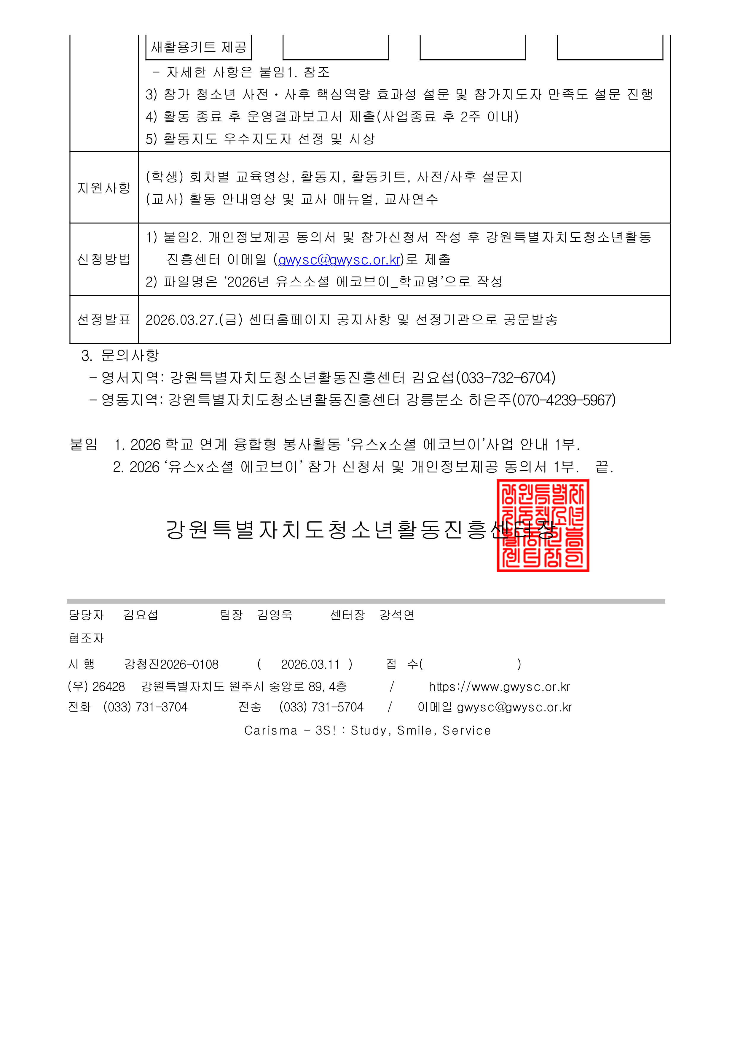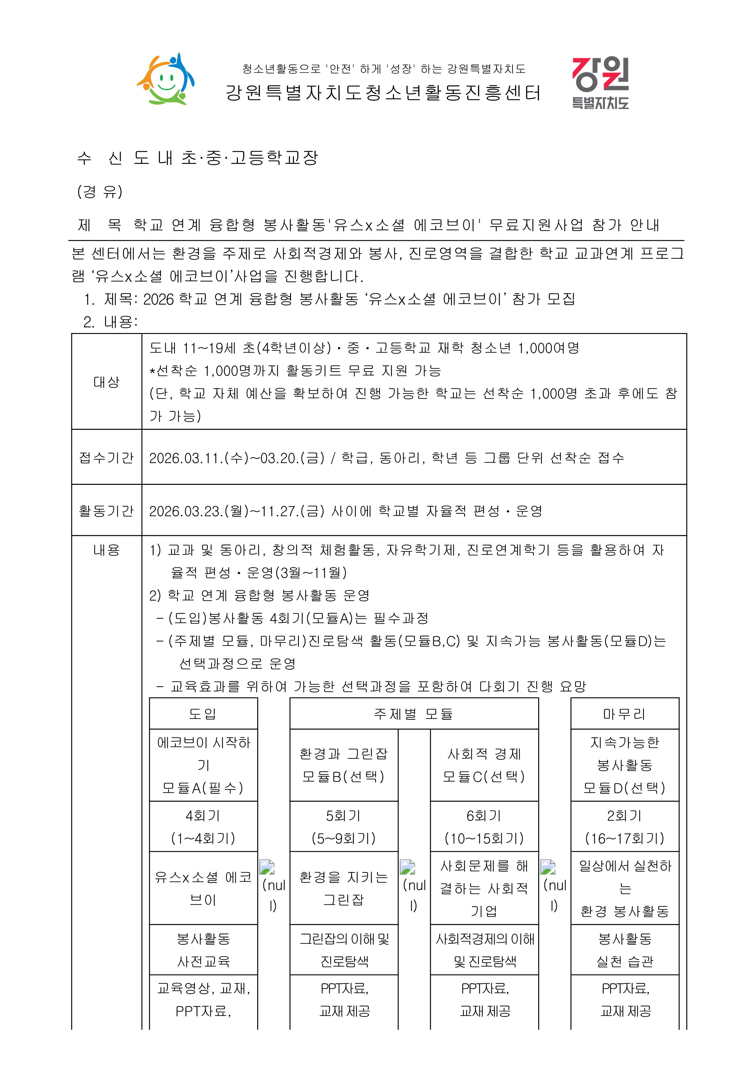 [붙임1]2026 학교 연계 융합형 봉사활동 유스x소셜 에코브이 참가안내.hwp