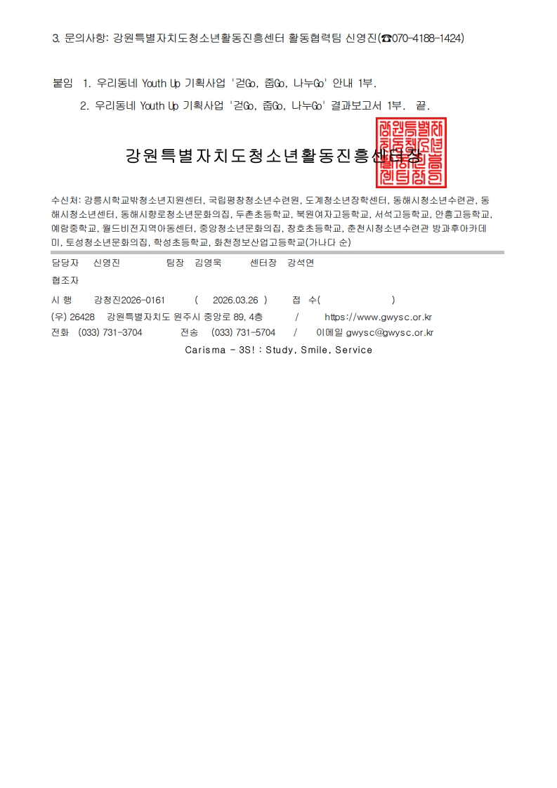[공문]우리동네 Youth Up 기획사업 '걷Go, 줍Go, 나누Go' 참가기관 확정 안내.pdf