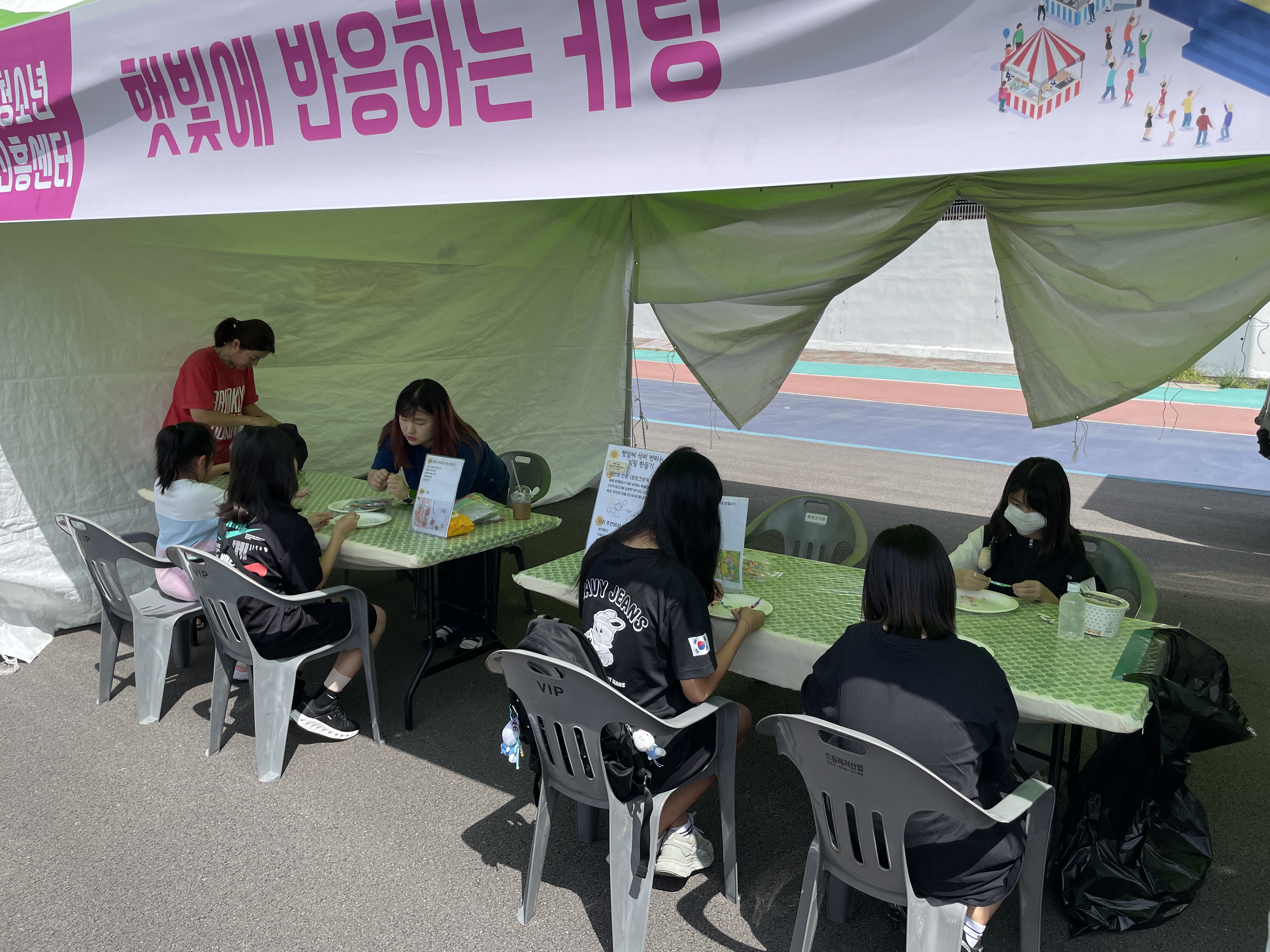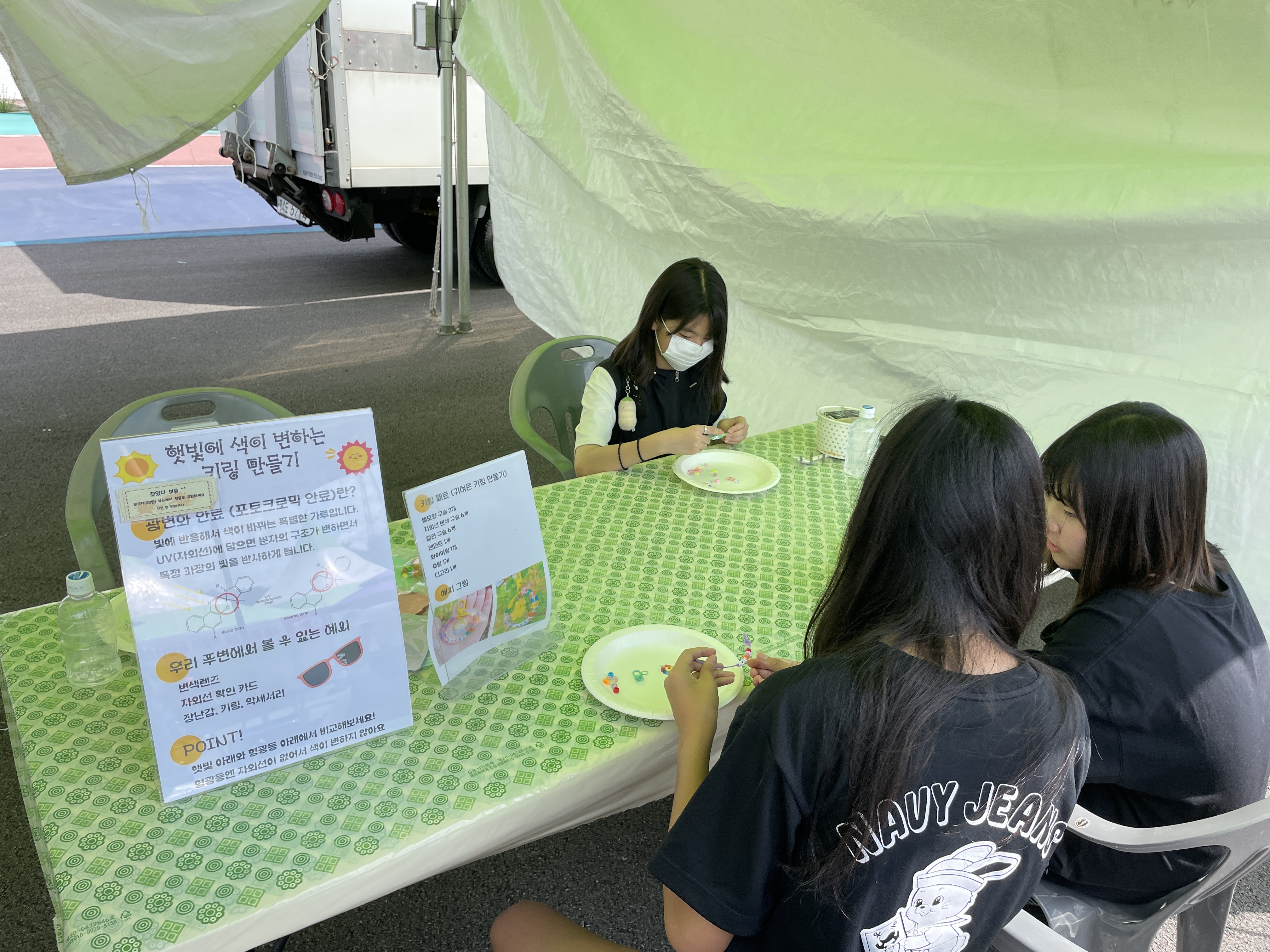 강릉분소는 동해시 청소년 행복페스티벌에서 '햇빛에 반응하는 키링 만들기' 프로그램으로 부스 운영을 지원하였습니다. 광변색염료를 사용한 비즈(레진)와 귀여운 펜던트로 자신만의 개성을 보여줄 수 있는 키링을 만들었습니다.
