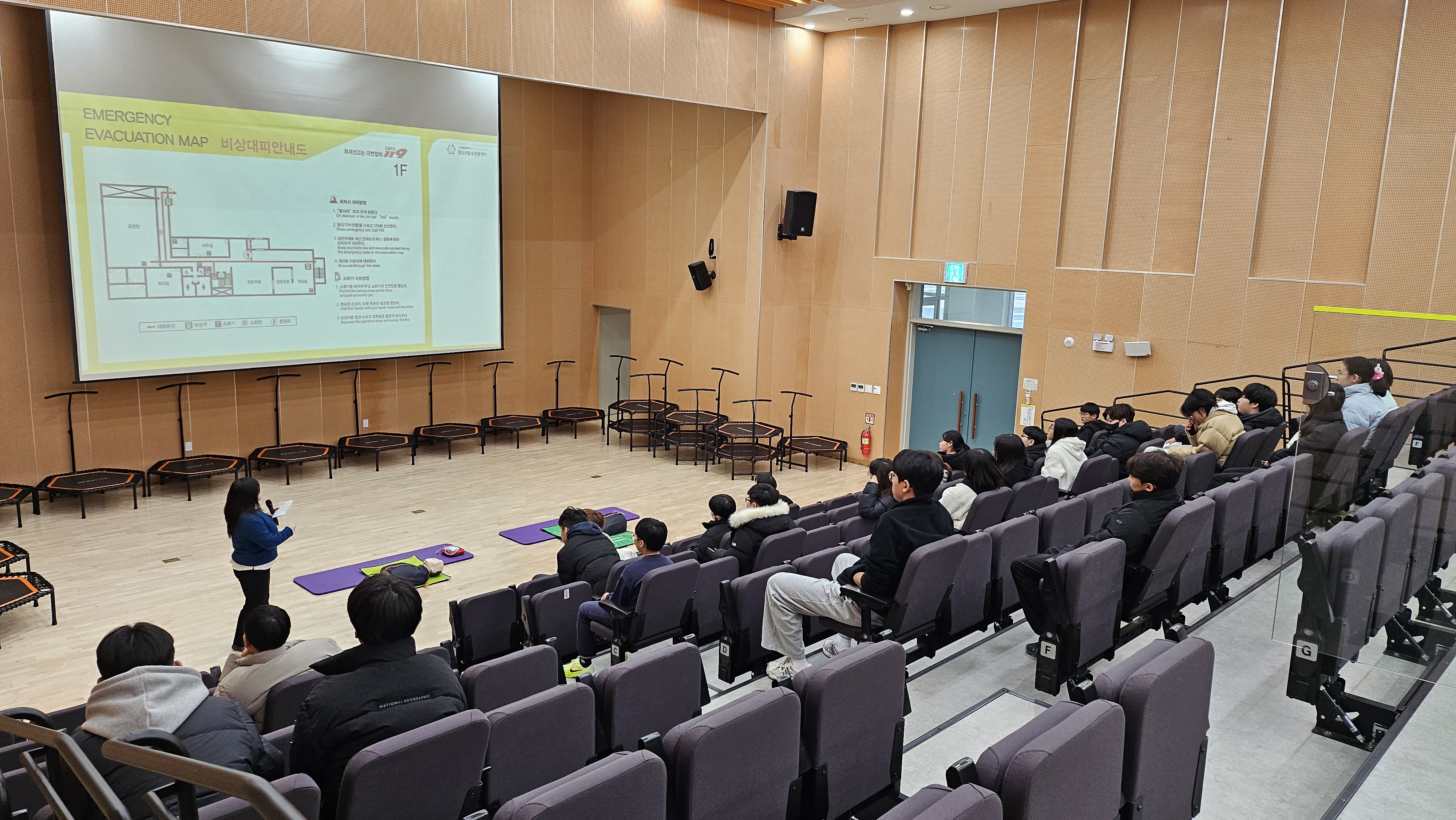 실내 활동이 많은 겨울방학 프로그램의 특성을 고려하여 화재 발생 시 대피 경로 확보 및 유도 방법 등 화재 안전 교육도 함께 실시되었습다.